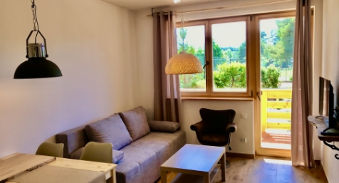 Przestronne, trzypokojowe apartamenty położone są na parterze oraz I i II piętrze. Goście do dyspozycji mają własne balkony z ekspozycją południową i miejsca postojowe na terenie kompleksu.